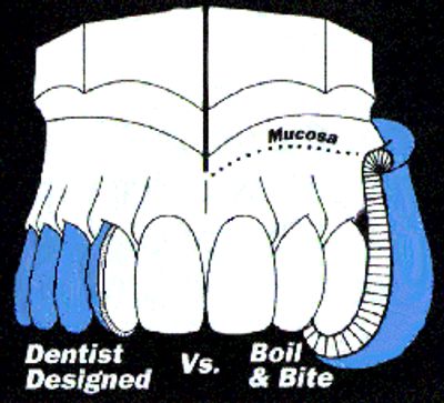 The "boil-and-bite" trays used by over-the counter products overlap the soft tissue producing increased irritation and feel bulky in your mouth. Aside from the obvious discomfort, TMJ problems may result. The custom designed trays closely conform to the natural contours of the teeth and are more comfortable, assuring a superior result with greater compliance.
